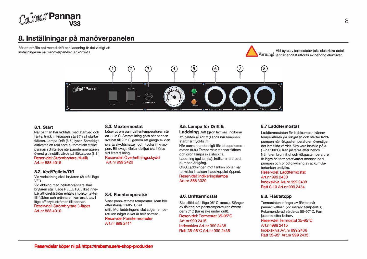 Rökgastermostat 50-300 grader för start och stopp av laddpump V33, V65